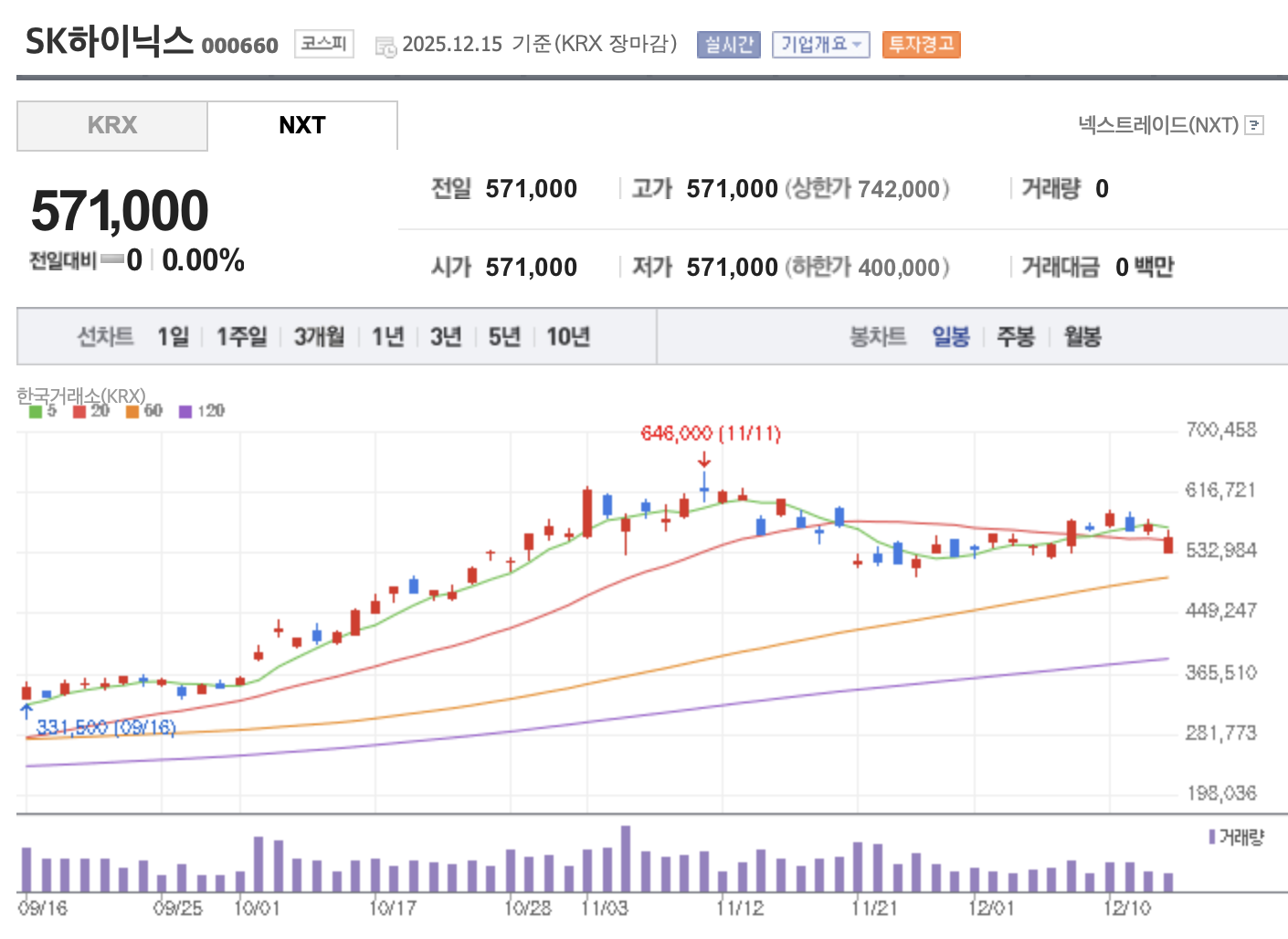 2025년 12월 11일, SK하이닉스가 투자경고 종목으로 지정됐다.